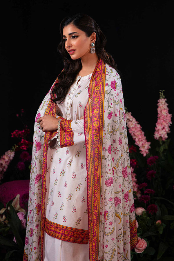 Make your catchy with this wonderful printed three-piece from the latest freedom to buy winter collection. Product Detail:Traditional Embroidered Motifs in Printed Form Shirt with Shawl and Trousers SHIRTPrinted Shirt: 3...
