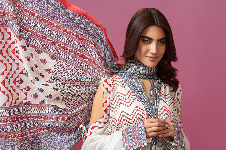 Create a decent look with this printed three-piece from the latest unstitched summer collection.