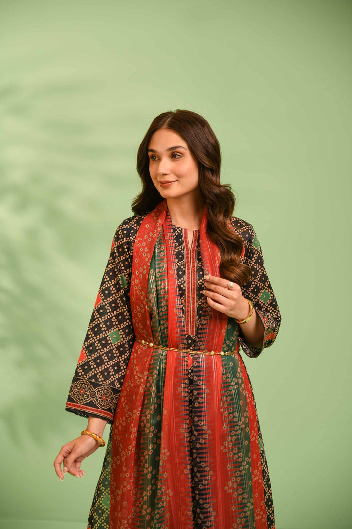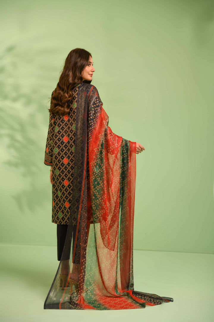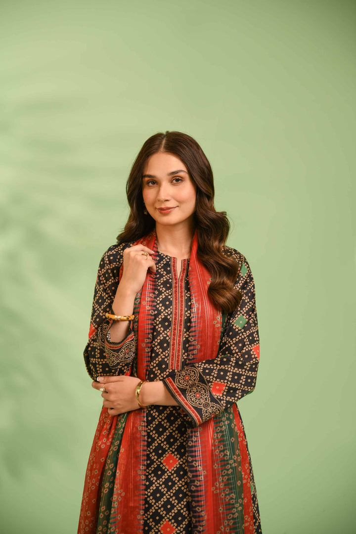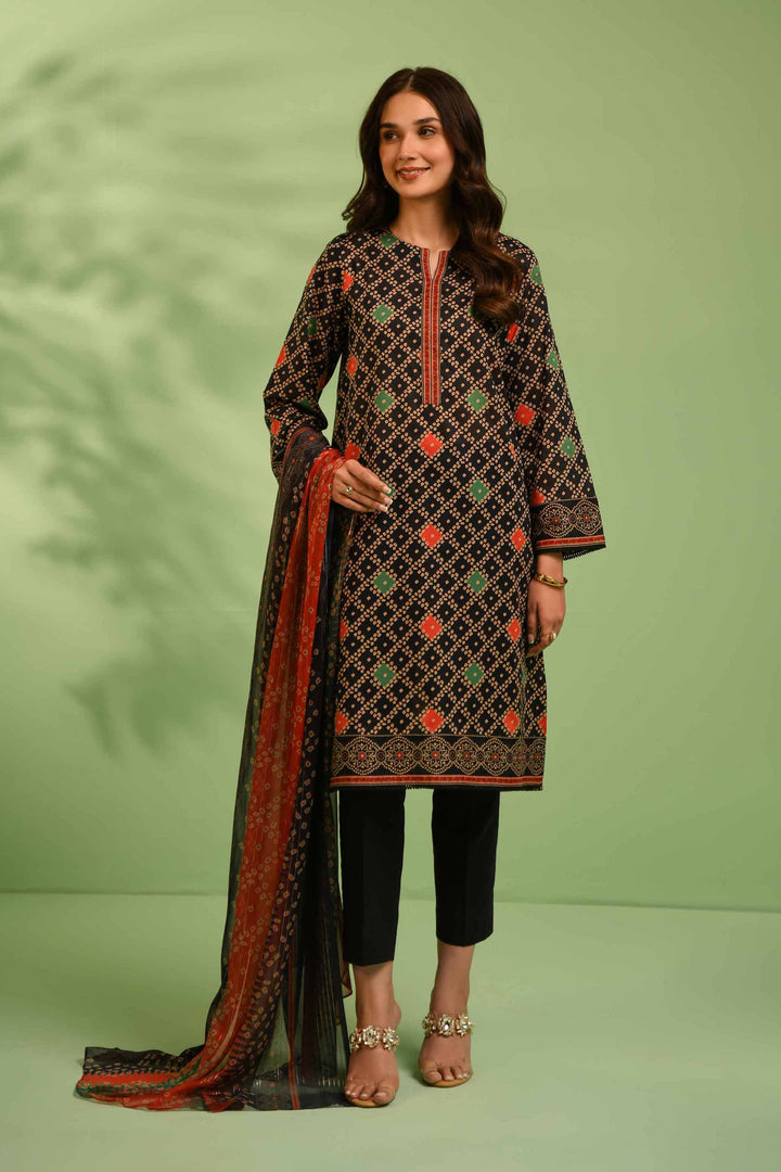 The vibrant prints can add an eye-catching and unique touch to your wardrobe so try this printed three-piece from the latest unstitched summer collection.