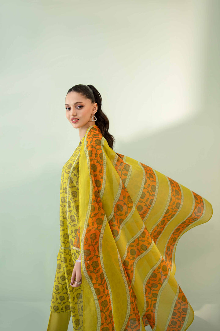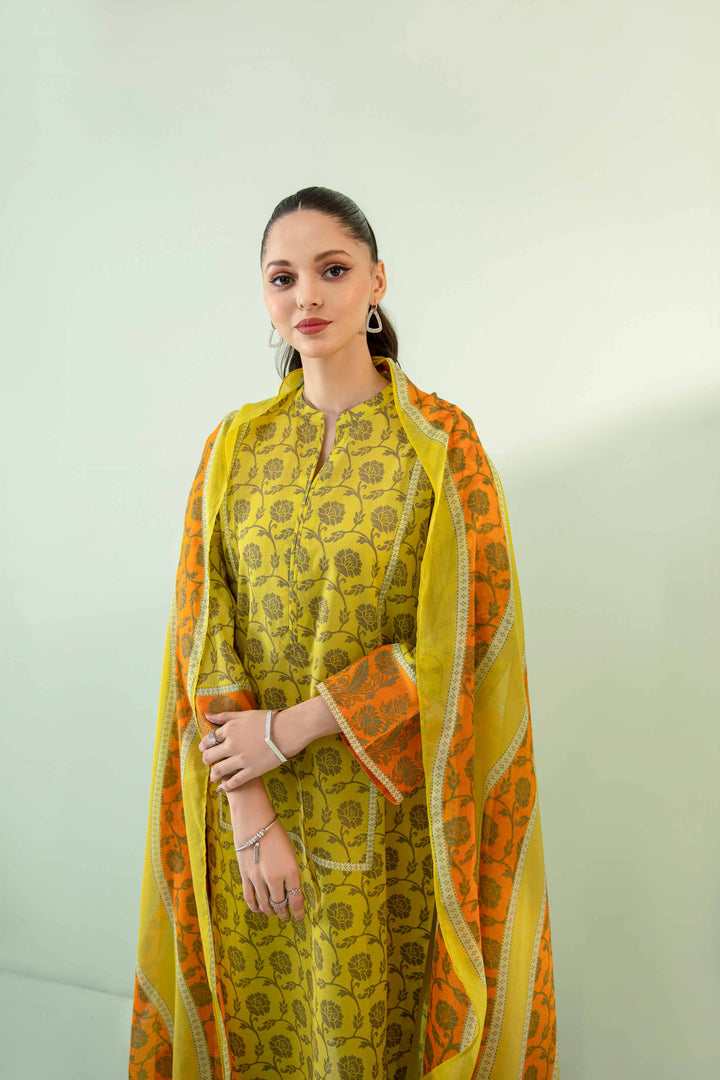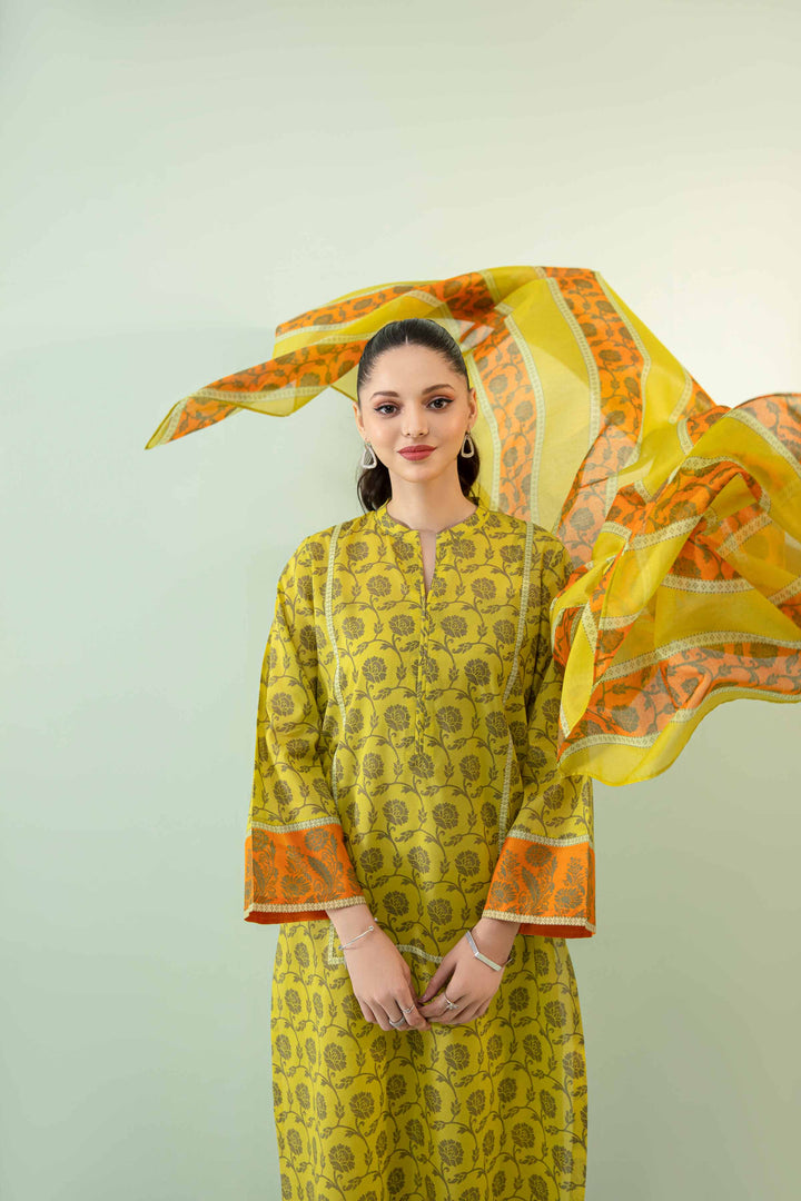 Get a versatile and trendy look with this printed three-piece from the latest unstitched summer collection.