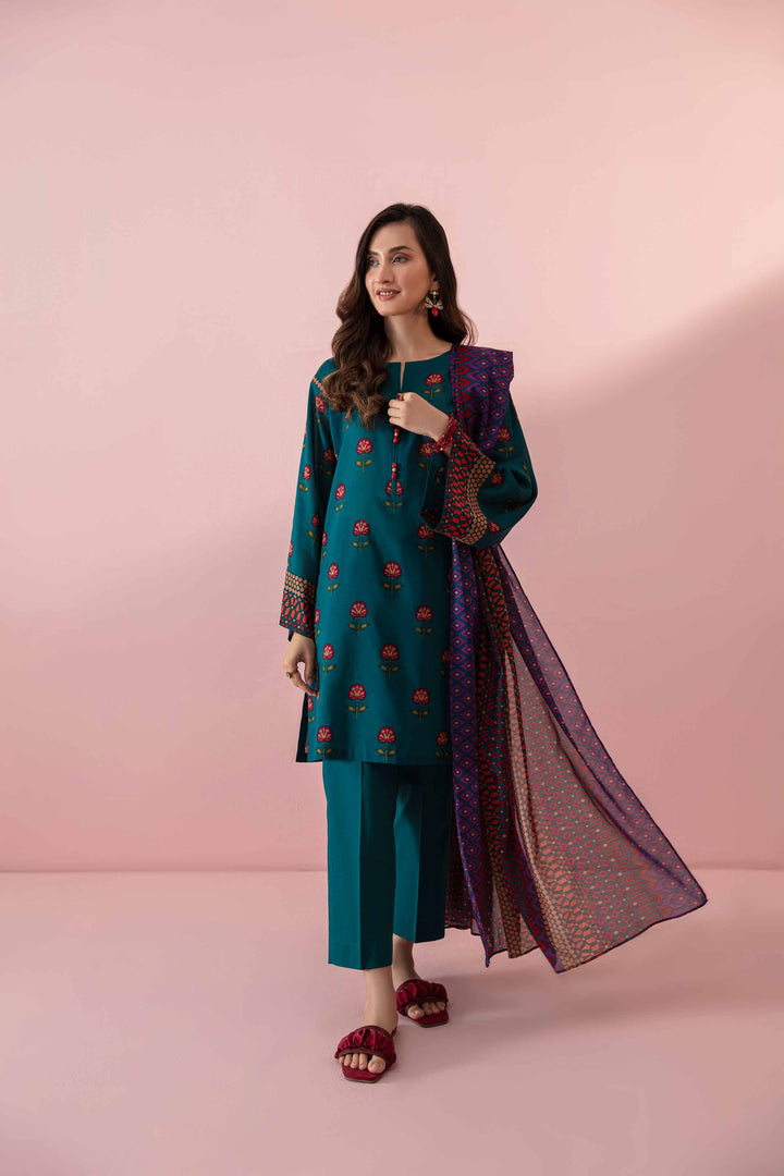 Express yourself with confidence by wearing this printed three-piece from the latest unstitched summer collection.