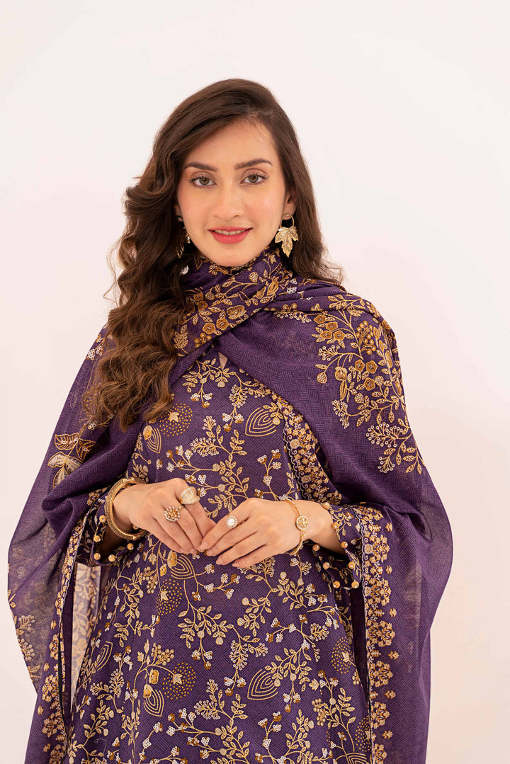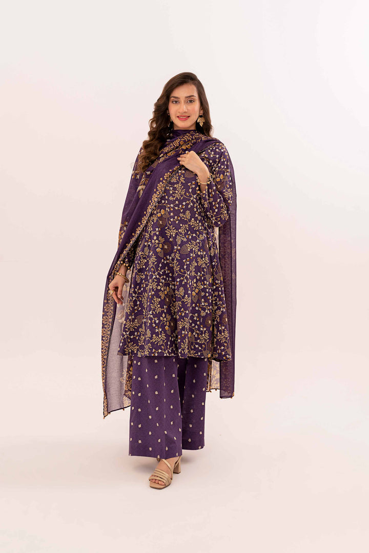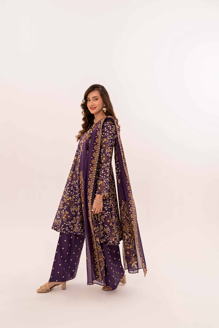 Give your wardrobe a stylish makeover with this printed three-piece from the latest unstitched summer collection.
