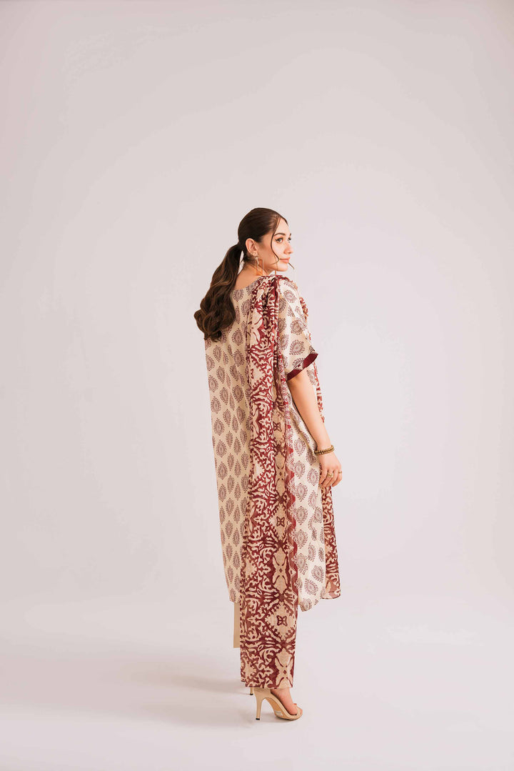 Look radiant by wearing this printed three-piece from the latest unstitched summer collection.