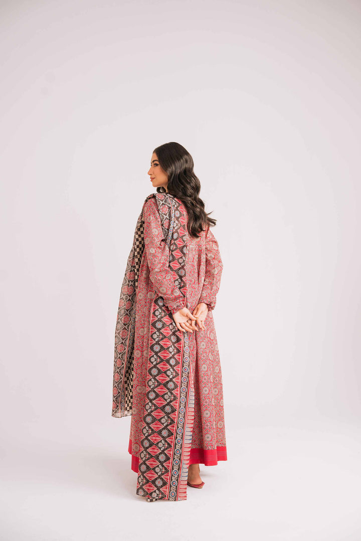 Ajrak Patterns In Printed Form Shirt with Dupatta and Trousers