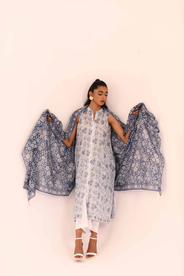 Abstract Florals Printed Style Shirt with Dupatta and Trousers