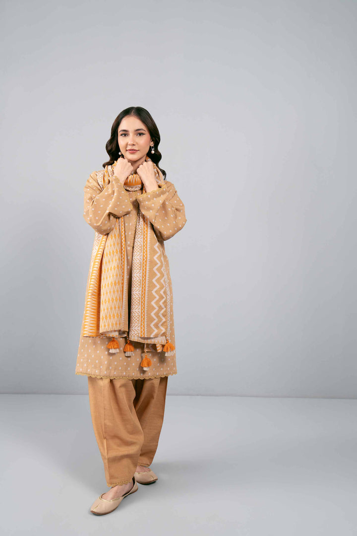 Geometric Patterns In Printed Form Shirt with Dupatta and Trousers
