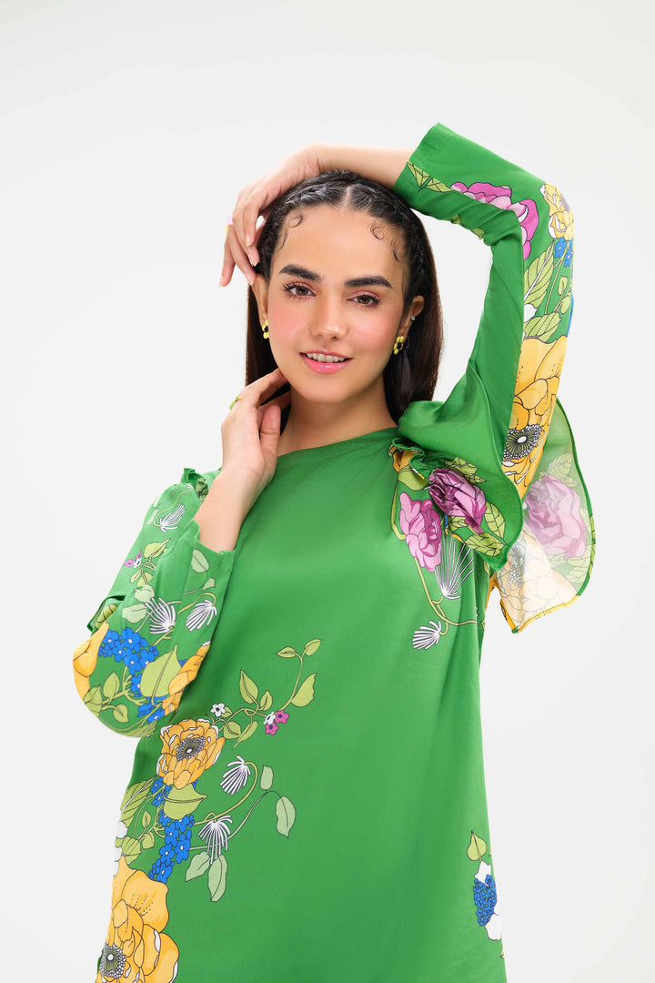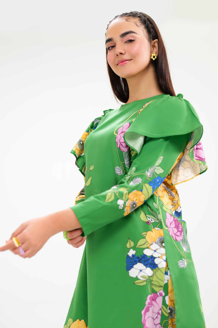 Boat Neckline, Frill Detail On Arm Hole, Printed Tunic