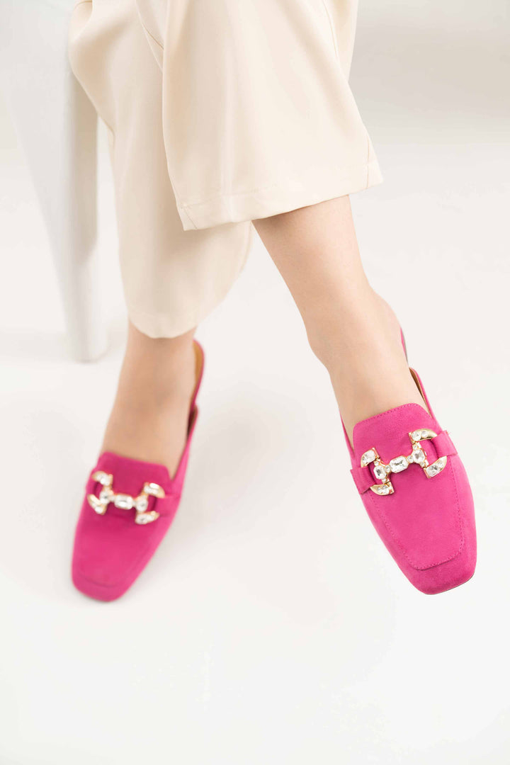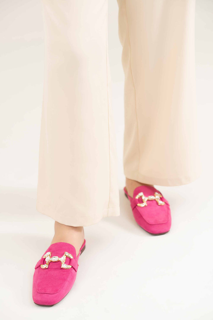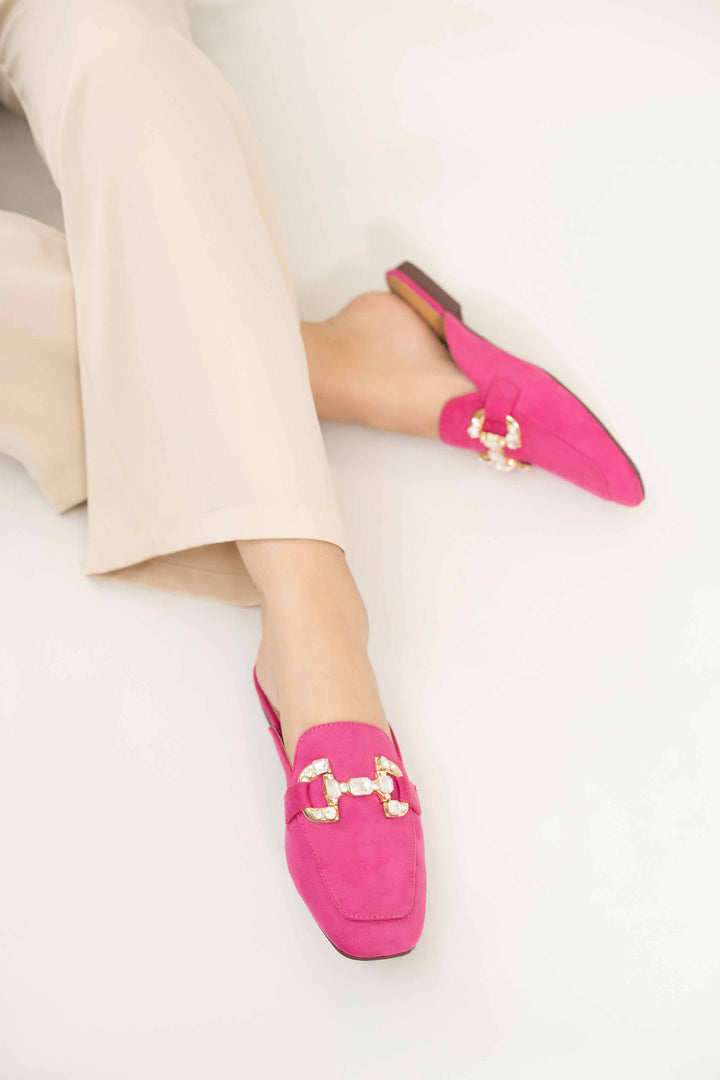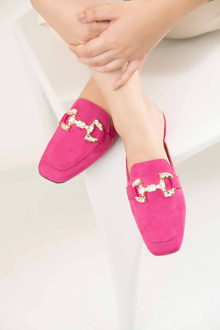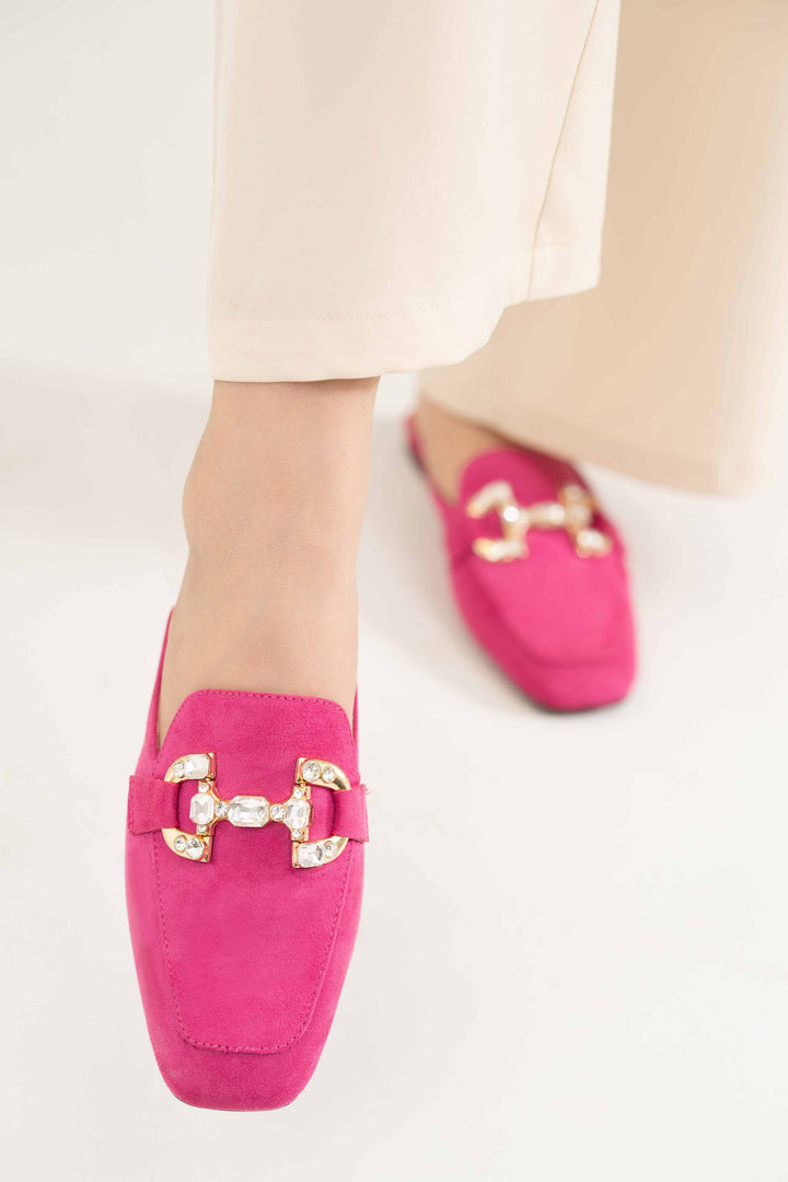 Elevate your look with these stylish back open pumps, featuring an embellished buckle that adds a hint of edge to your overall appearance. With a square toe shape and a rubber outsole, these pumps ensure both comfort and style.