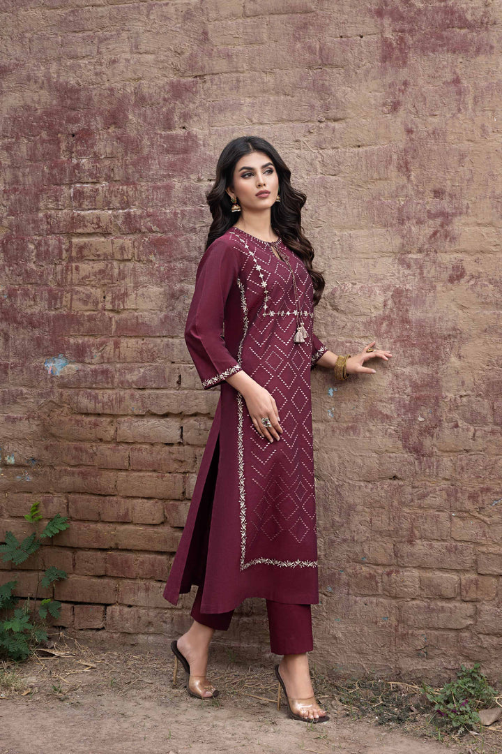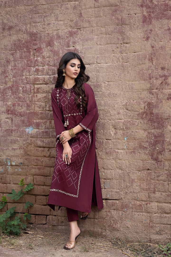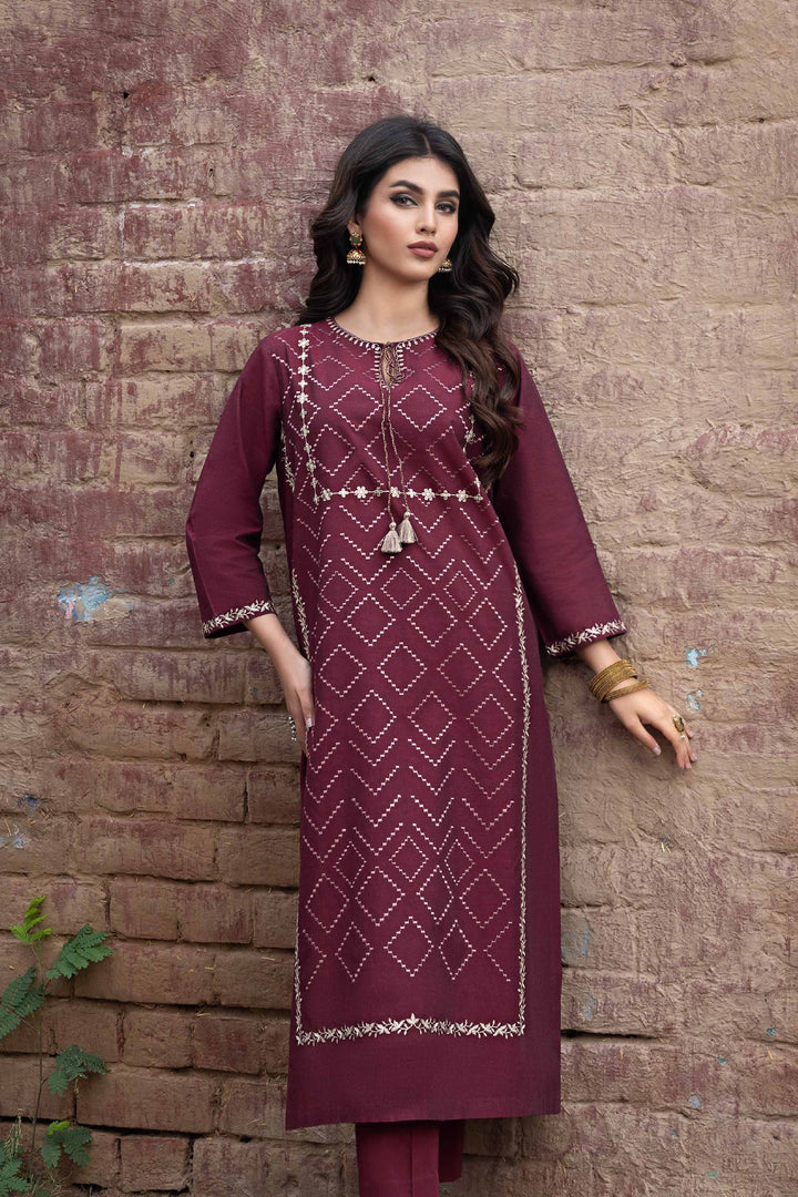 Round Neckline With Tie Up Dorri & Tassels Detail, Embroidered Front & Sleeves Edge With Tilla Detail