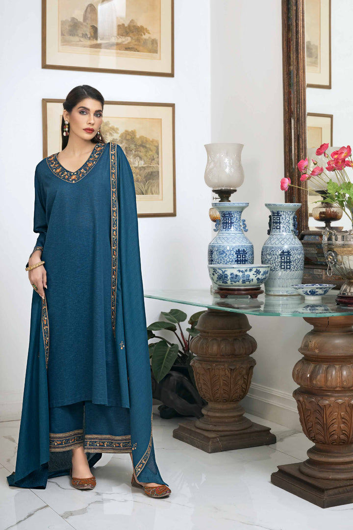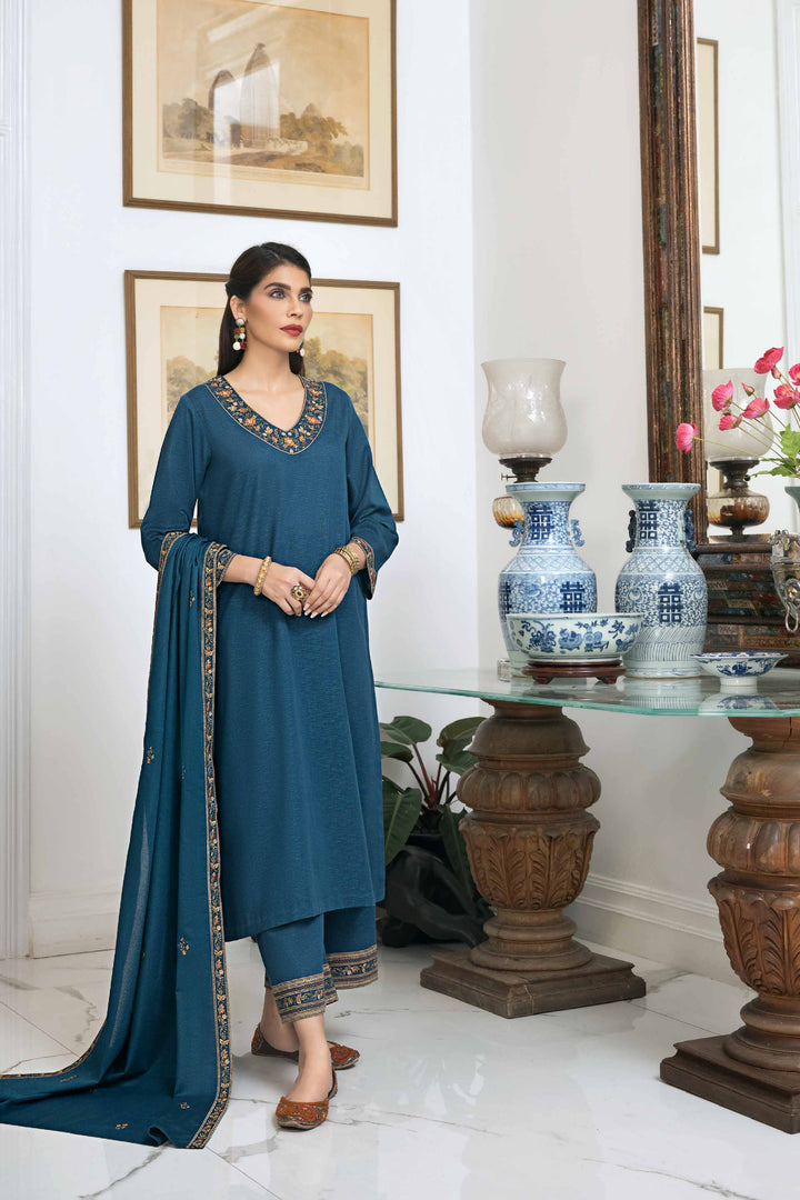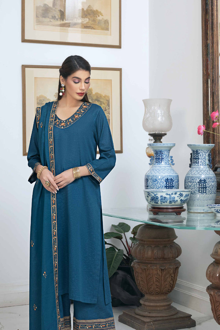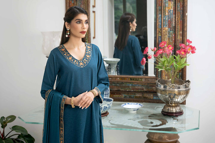 Embroidered Shirt with Dupatta & Trousers