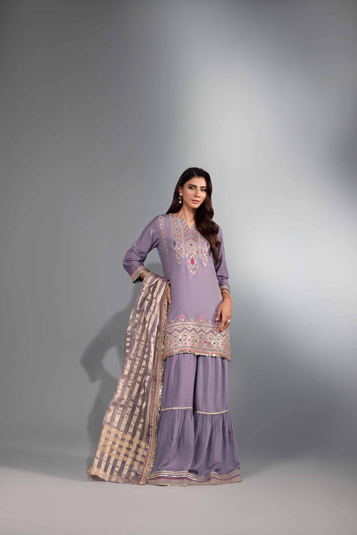 Embroidered Shirt with Dupatta & Gharara