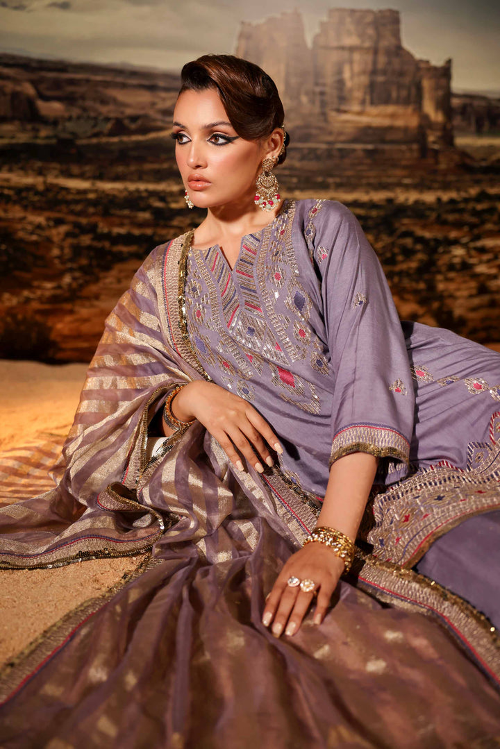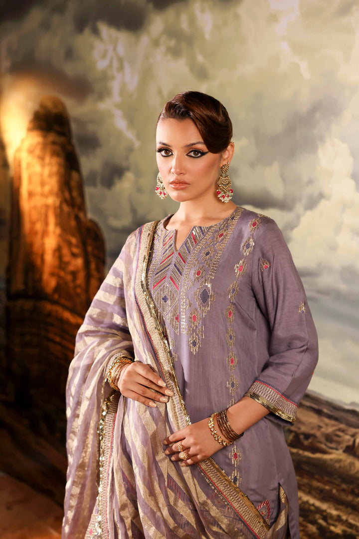 Add a touch of glamour to your style with this stunning embroidered three-piece suit from the latest luxury pret winter collection.