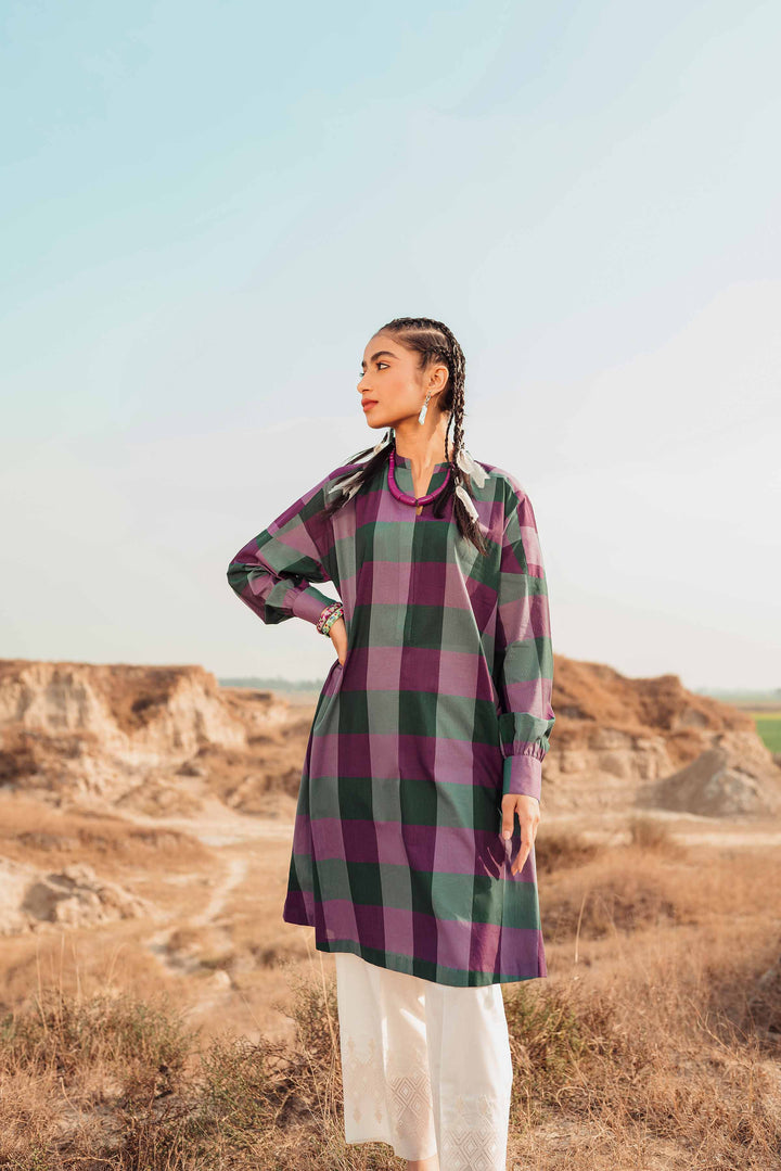 Band Neckline with Placket, Drop Shoulder Shirt, Cuff Sleeves, Basic Shirt